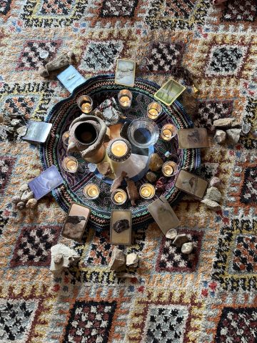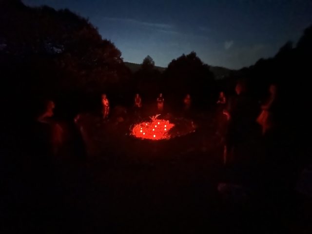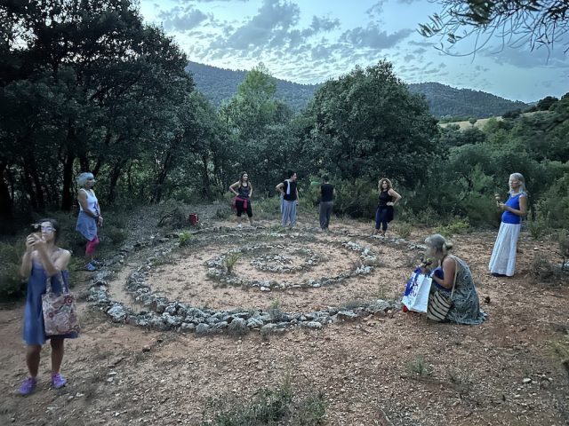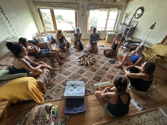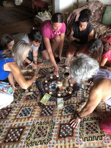 Abrimos un espacio sagrado en que hacemos ejercicios con la Rueda Medicina, rituales en la naturaleza, meditaciones guiadas, baile y trabajamos con la astrología y los tránsitos actuales de los planetas (con Hermine). Cada día abrimos y cerramos con una sesión de yoga con Dakini.